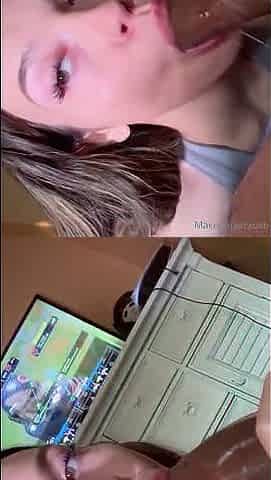 Slip your dick down her mouth during the time that this babe rubs her swollen love button