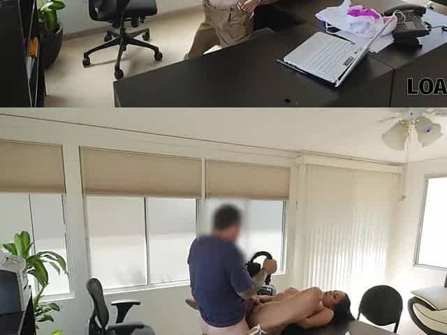 LOAN4K. Maigre brune passe devant un vrai casting sexuel a une agence de credit