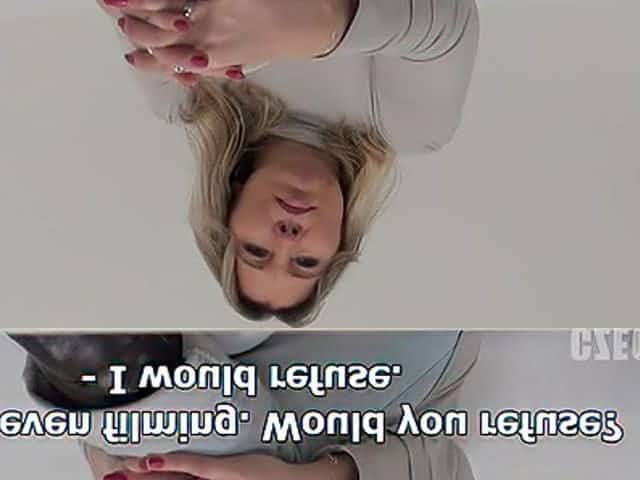 Breasty Czech housewife, Karolina is sucking weenie and getting banged during a porn clip casting