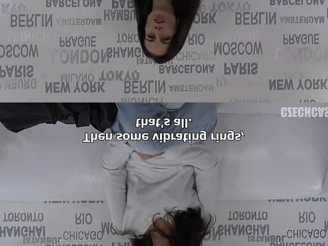 Euro faphouse casting with a hot brunette in wild positions and fun cumshots