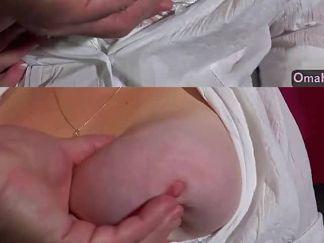 Aged Czech woman with golden-haired hair, Drahomira is using her large bazookas to please a man