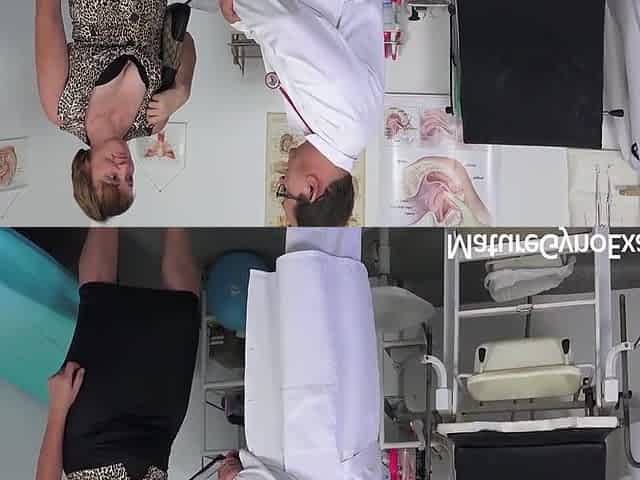 Breast and pussy check-up of hot big busty MILF by freaky doctor