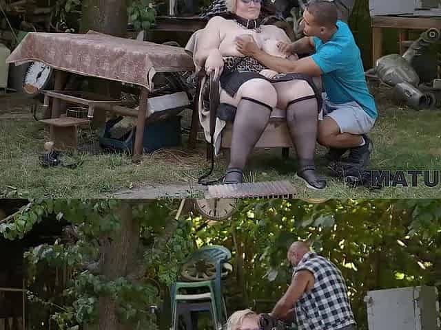MATURE4K. Kinky outdoor sex between aged woman and two strangers