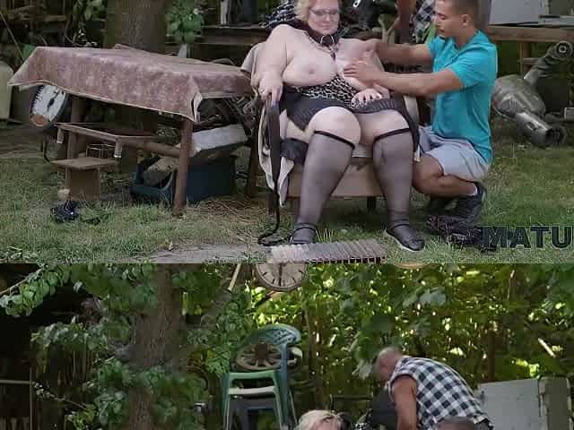 Mature Bbw With Huge Tits Gets Fucked By Two Guys In A Threesome - MatureNL