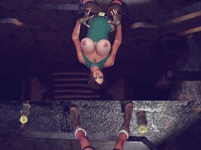 Tanned wanton Lara Croft in torn shorts slow dances in abandoned ruins