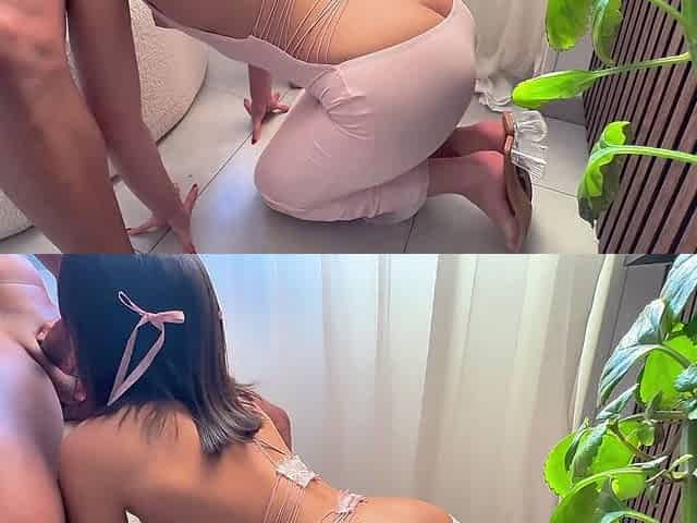 Dancing clothed as a slut sucks and bangs and cums with squirting