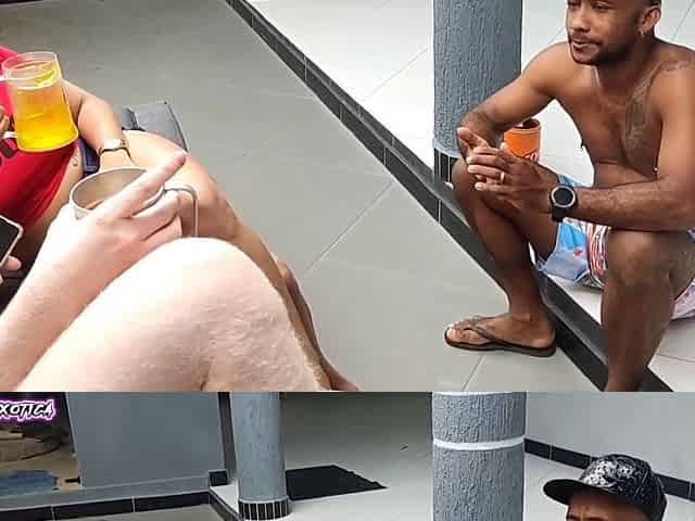 Big tits African MILF dancing and fucked rough outdoors by the pool
