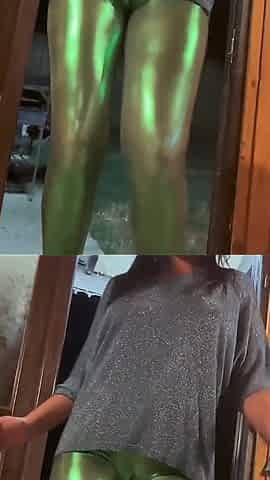 Horny Pantyhose Slut Dances and Masturbates in Ripped Tights and Shiny Top