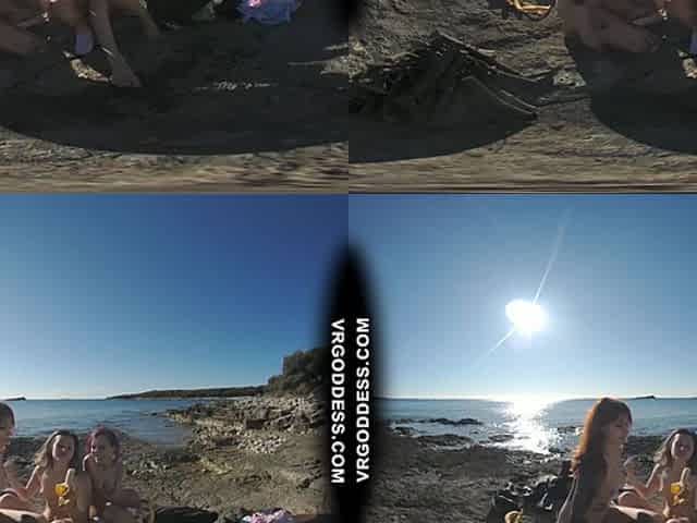 3 Hot Girls Getting Naked On Beach During Winter Making Fire Eating Bananas Dancing