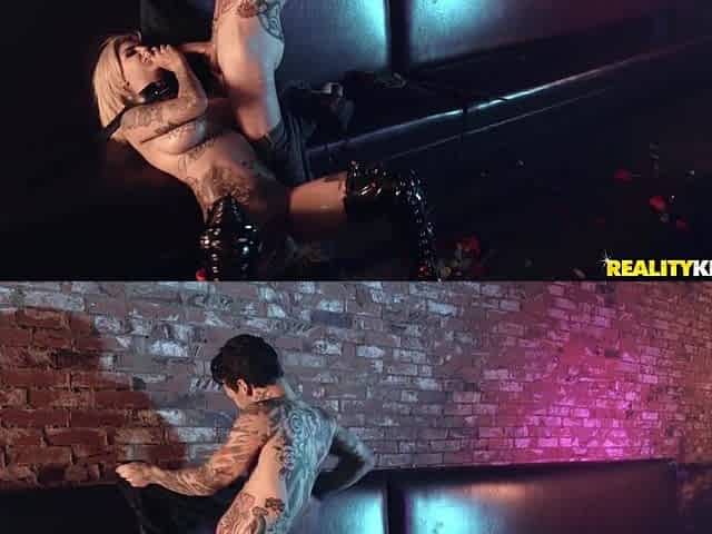 Hawt floozy pole dancing and stripping in an Amsterdam club