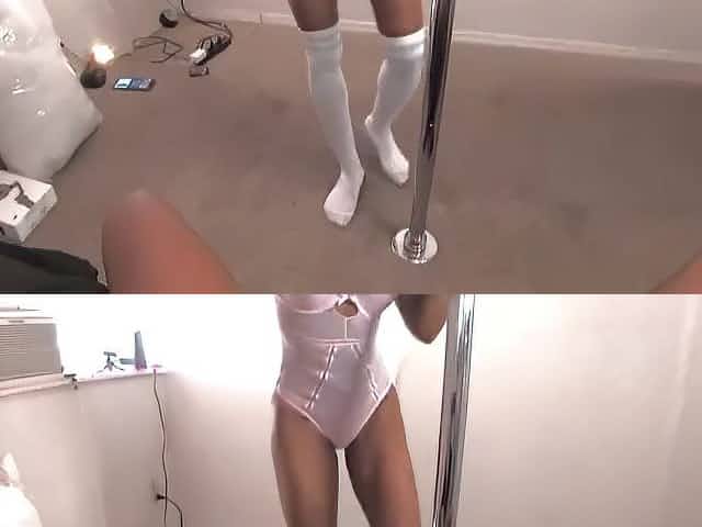 Black pole dancer is widening her legs wide open and groaning from fun during the time that getting banged