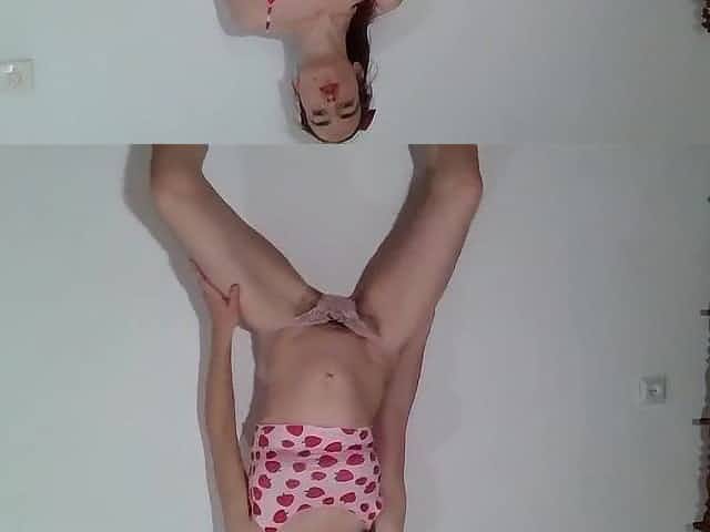 Hot brunette hair dances a striptease and masturbates on camera for a chap