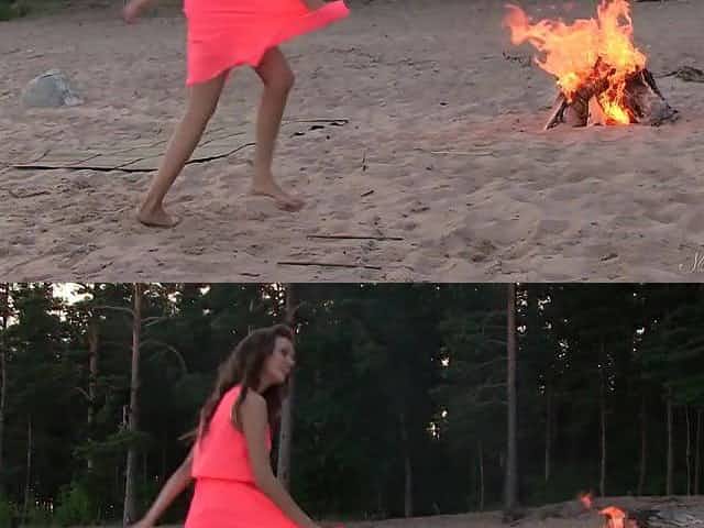 Slutty slut dancing in nature's garb for u