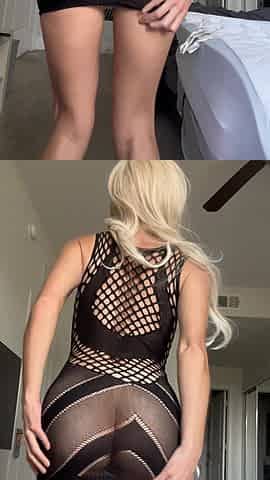 Skinny Blonde Dances in Lingerie Sheer Black Dress with Bare Ass and Pussy