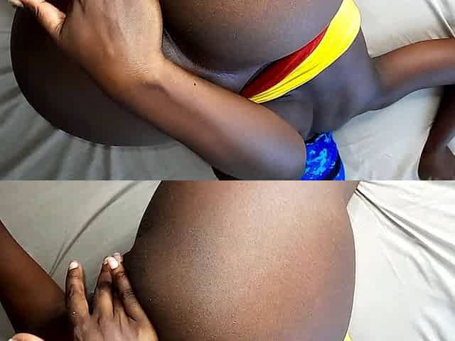 Black stepsister Sweet Baebs Melanin teases and toys with her vulva while home alone