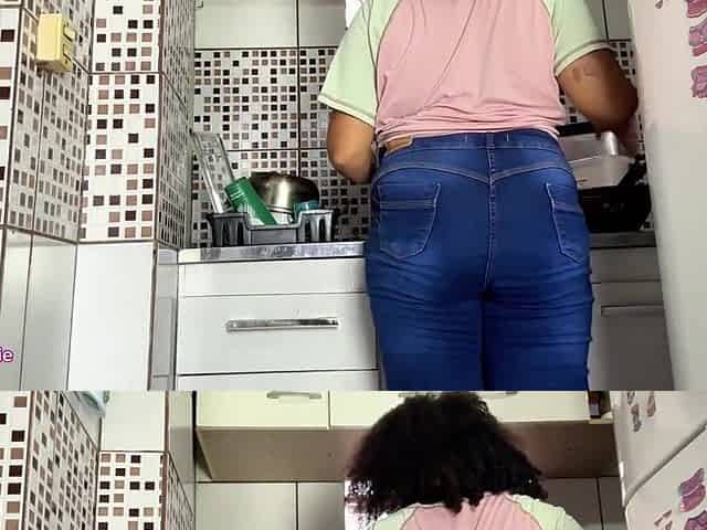 Curvy angel Farting in Jeans Whilst Doing the Dishes