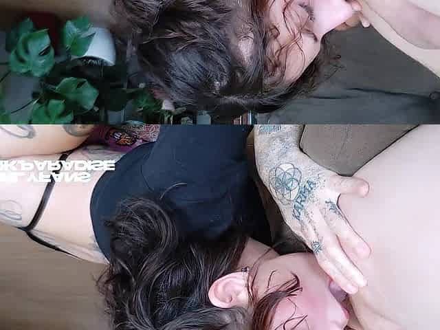 Dark haired with Bubble Butt takes her stepbrothers hard cock and guzzles his massive load of jizz