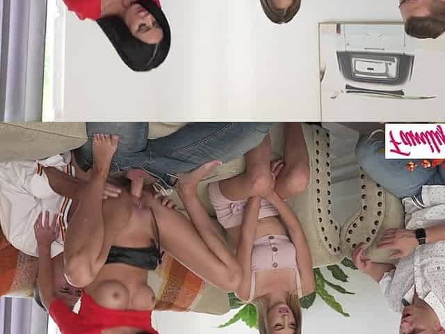 Two Blonde Sluts Fuck a Bastard on the Couch