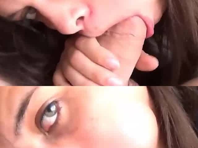"Cumming in her blonde lovers face is this brunettes ideal sex act"