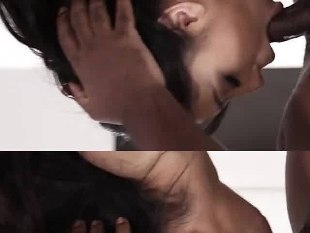 Ebony stepsister sneaks in n blows stepbro to keep him quiet
