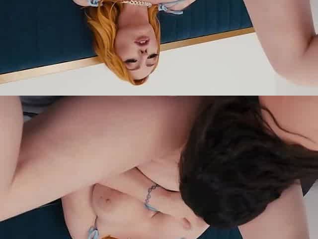 Dirty bigtitted nympho lesbians play with pussies in 3way