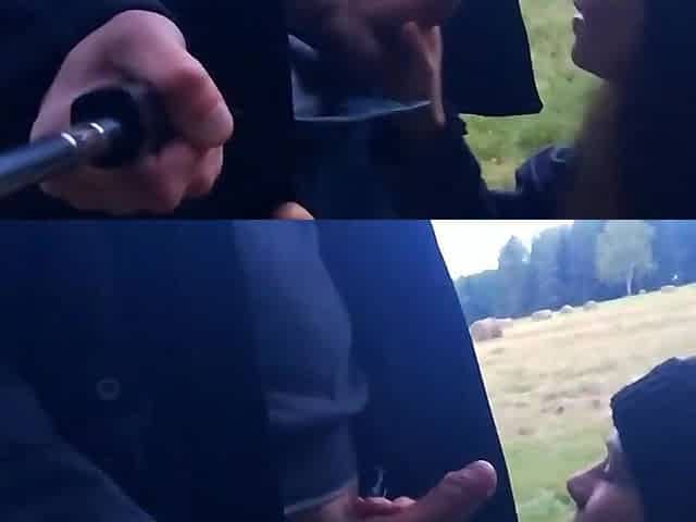 Stepdad receives a bj and fucks busty stepdaughter outdoors