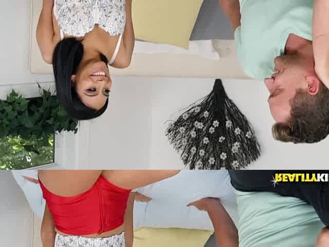 STUCK4K. Sex of darksome-haired Mia Trejsi and roommate takes place in the attic