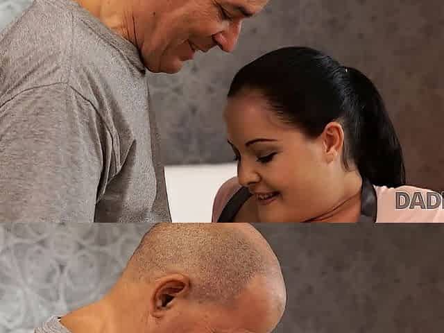 DADDY4K. Taboo sex with BF's dad ends for brunette hair with worthy facial