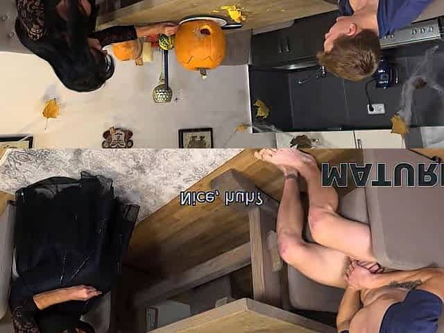 MATURE4K. Charmer gives muff to stepson for sexy bonking in the kitchen