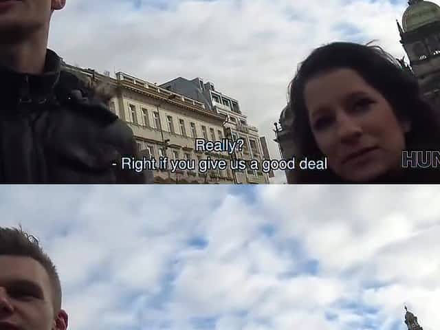 Black haired babe is about to make her first porn scene, with a guy she just met