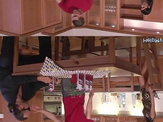 Busty, dark haired housewife is getting fucked in the kitchen, in the middle of the day