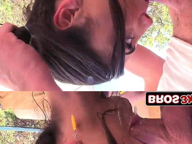Punching hard on the hot brunette: Blowjob, Amateur Babe Porn