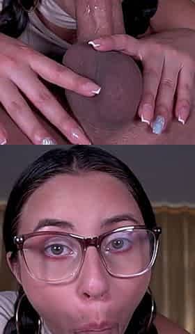 Deepthroat blowjob from stepbrother that ends in a mouthful of cum