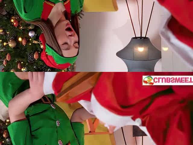 Santa helper banging Santa's large shlong below tree at ClubSweethearts