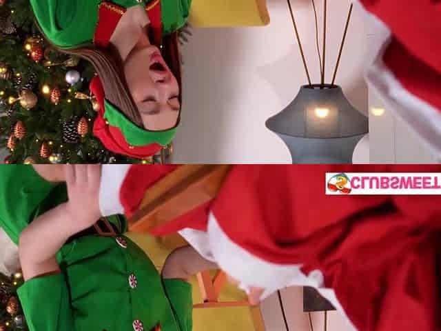 Santa helper banging Santa's large jock below tree at ClubSweethearts