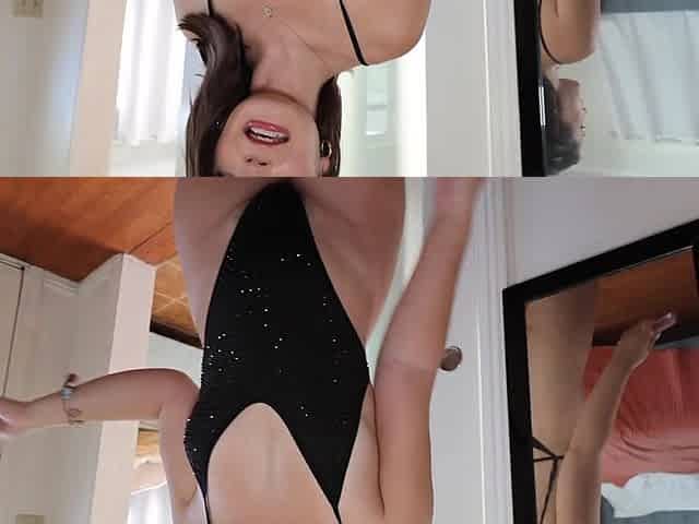 Sassy milf tries on a sexy outfit for her insatiable husband