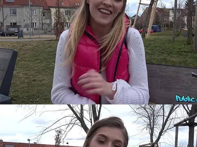 Glamour blonde babe outdoor deepthroat