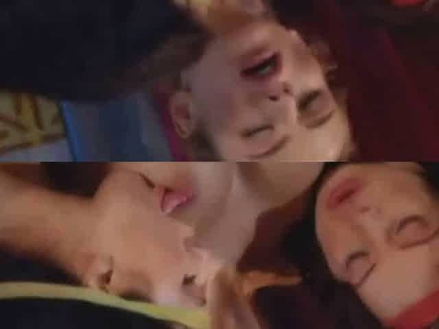 Golden-haired chick watched me screw brunette hair cuttie