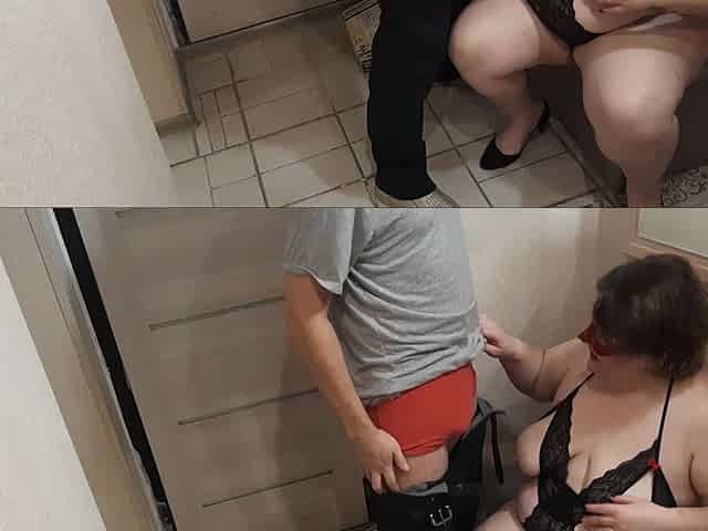 Fat ass delivery woman tastes his huge cock