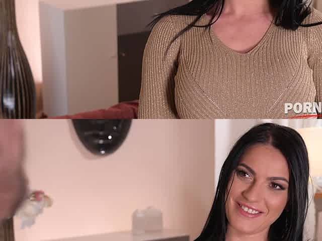 Gorgeous and brunette Bella Baretta gets hammered by delivery man