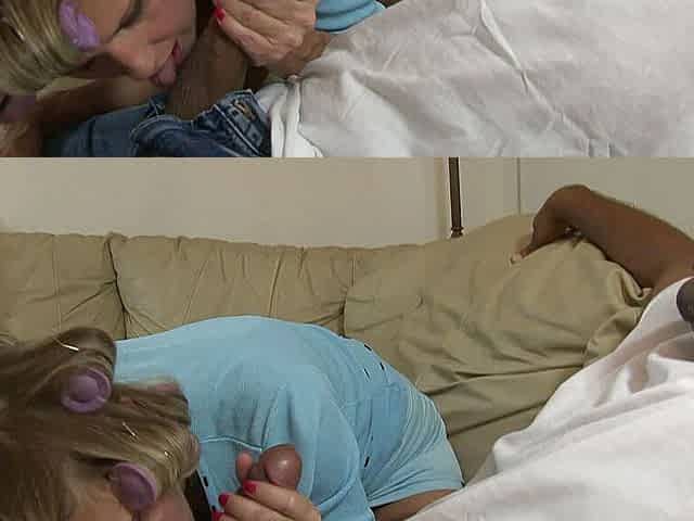 Blonde sluts pay for pizza by sucking delivery man's big cock