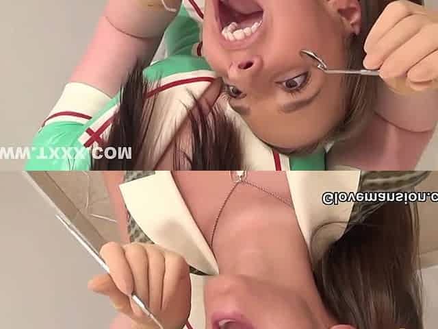 Naughty dentist gives more than a cleaning. This hot Asian dentist is examining her patients mouth. He is examining her round ti