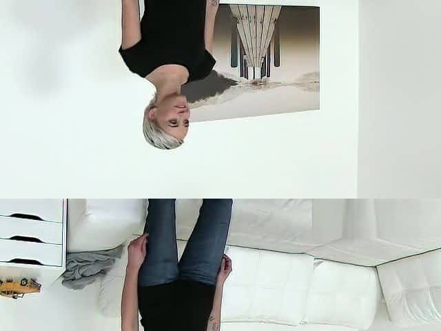 Hot short haired blonde model fucked doggy style on desk
