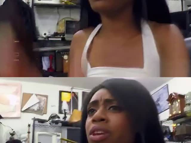 Amazing Looking Black Girl Banged On Desk In Pawn Shop