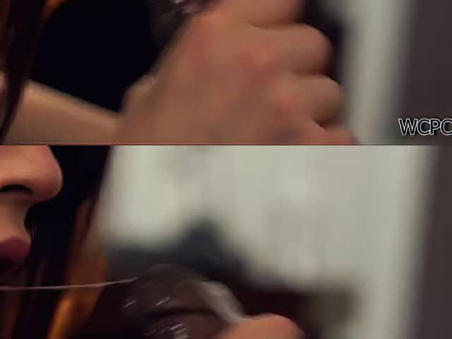 Olive skin brunette beauty gets hard fuck on a desk