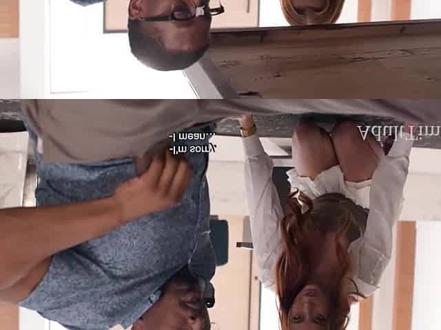Breasty Redhead Boss Takes a Thick Ebony Knob on Her Desk
