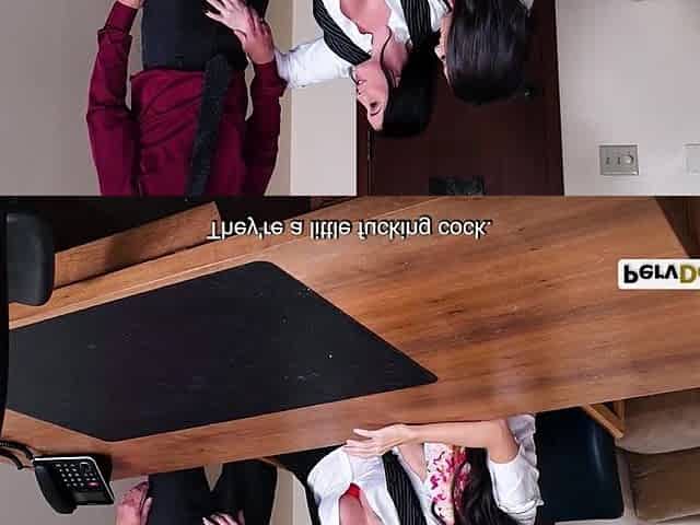 HORNY ASIAN SLUT GF WONT LET YOU WORK WITHOUT SUCKING UR COCK UNDER THE DESK