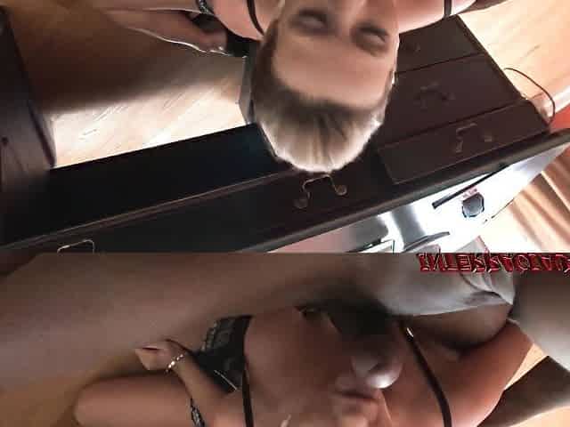 Sissy daddy and secret blowjob under desk slowly pummeling her gash