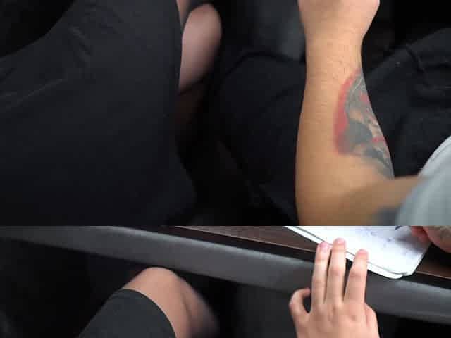 Tattooed milf Kessie Shy pussy busted by officer on the desk