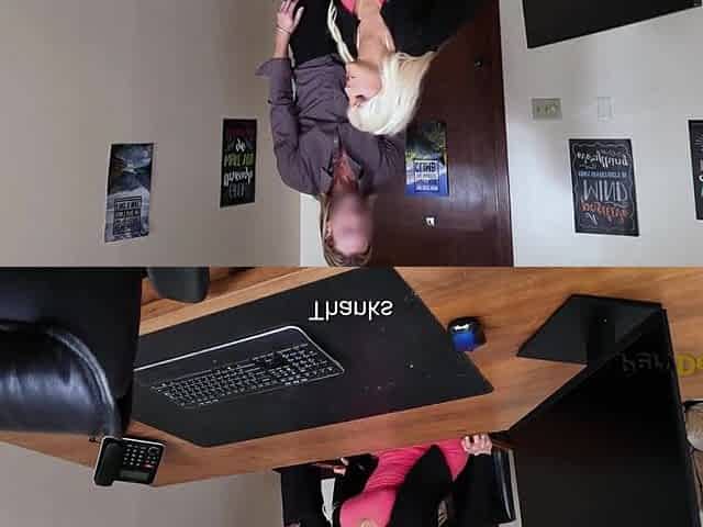 Desk Fuck For With James Brossman, Petite Blonde And Marilyn Sugar